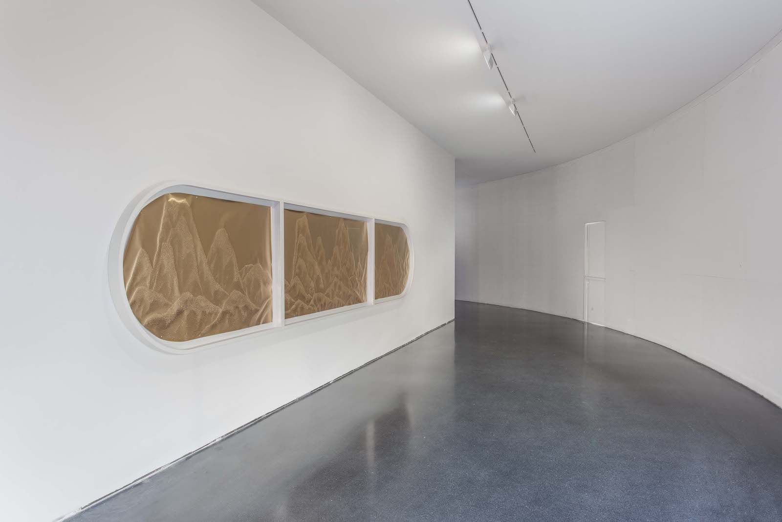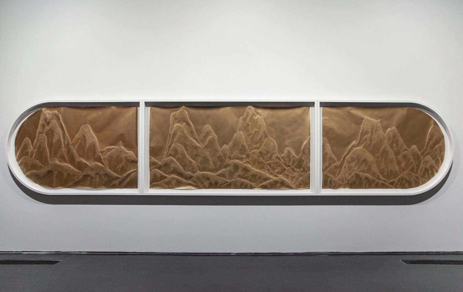Projected landscape, 2019 — perforated paper and spray paint, 120 × 600 cm (triptych)